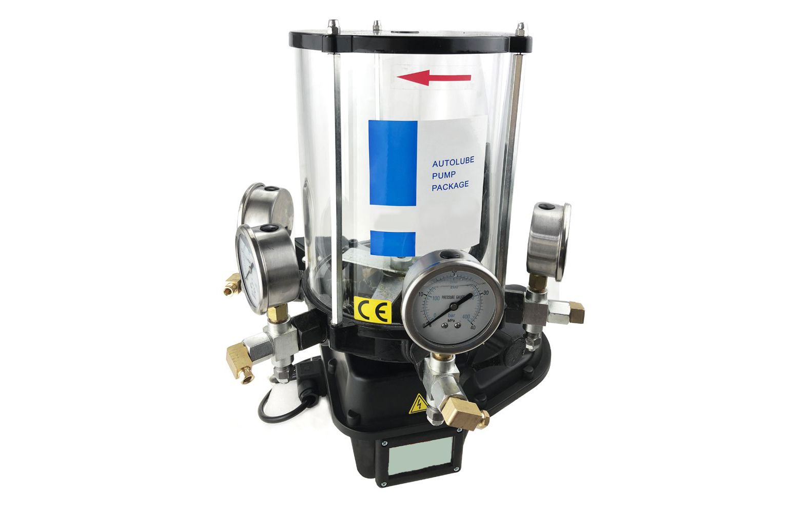 Электрическая насосная система для подачи смазки под высоким давлением изготовлена из высокопрочного стекла, выдерживающего высокое давление. Дополнена распределителем, состоящим из 4 форсунок, обеспечивающих равномерный выход масла на узлы. Поставляется в комплекте с контроллером для управления работой. В комплекте также поставляются манометры и шланги.