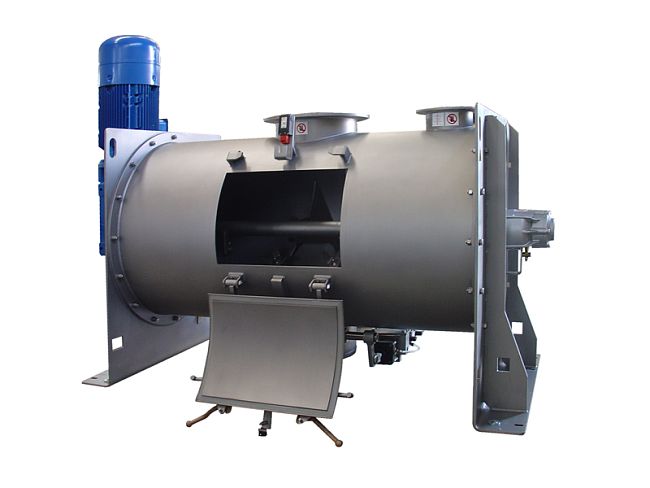 Объемы смесителя непрерывного типа достигают 28 м³. Некоторые модели оснащены гидравлическими системами для открытия выгрузочных люков и пневматическими системами для очистки, что повышает удобство их использования и надежность. Смеситель выполнен из высококачественных износоустойчивых материалов, таких как нержавеющая или углеродистая сталь.